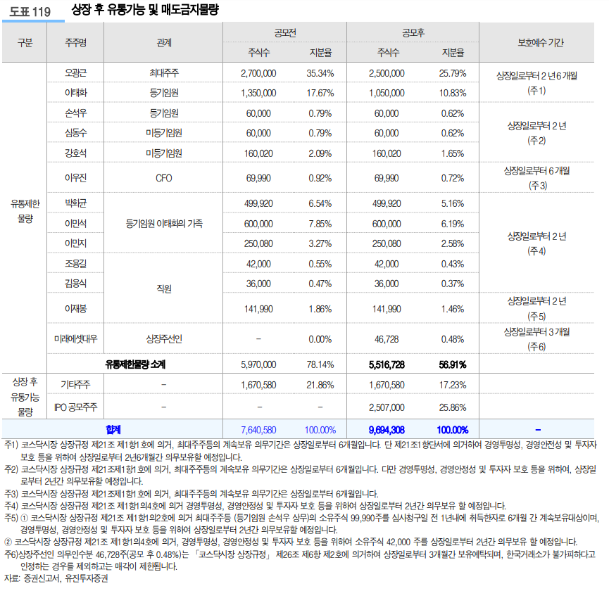 공모개요 및 보호예수 현황
