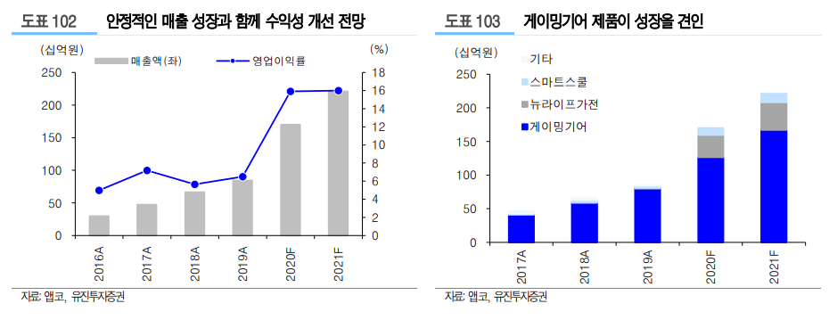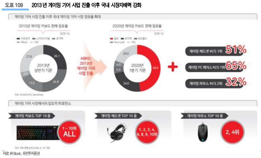 1) 주력 사업인 게이밍 기어 사업의 시장지배력을 기반으로 성장 지속 전망.
