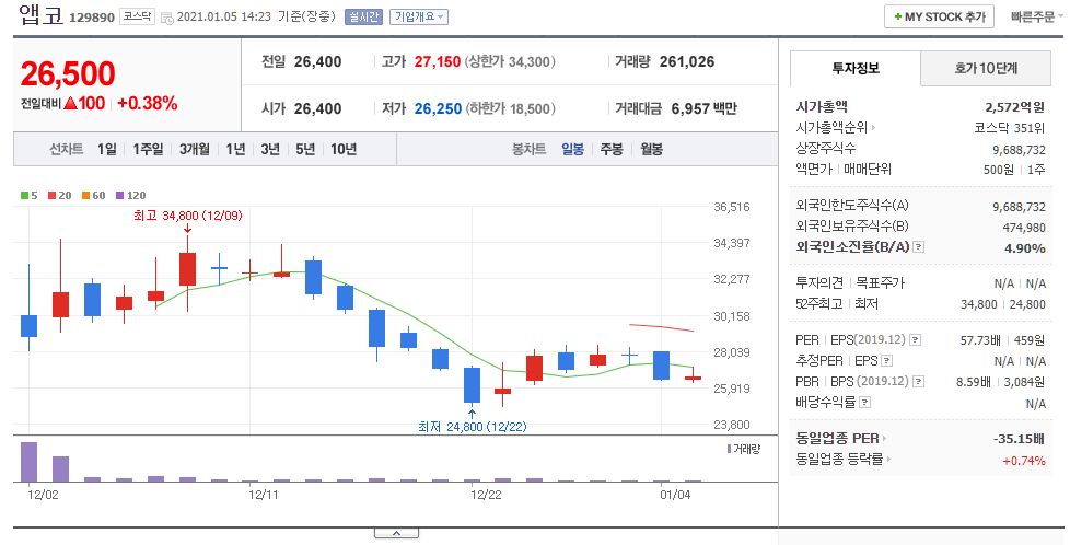 앱코 주식 회사 ( 앱코 129890 2020-12-02 신규상장 컴퓨터및주변장치제조업 코스닥 미래에셋대우(주) )