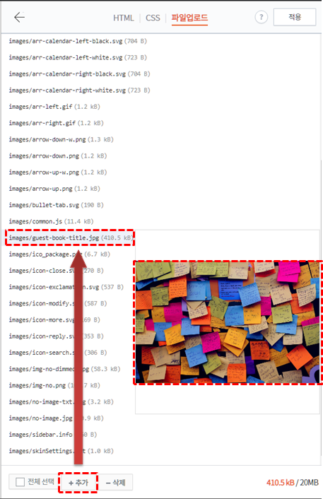 오늘은 방명록 작성을 장려하기 위해 이미지를 넣어 보자.