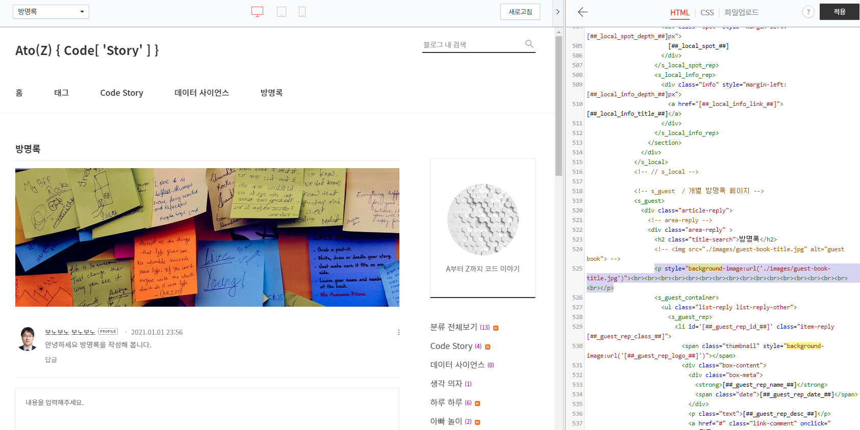 오늘은 방명록 작성을 장려하기 위해 이미지를 넣어 보자.