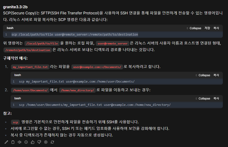 - `scp` 명령은 기본적으로 안전하게 파일을 전송하기 위해 SSH를 사용합니다.